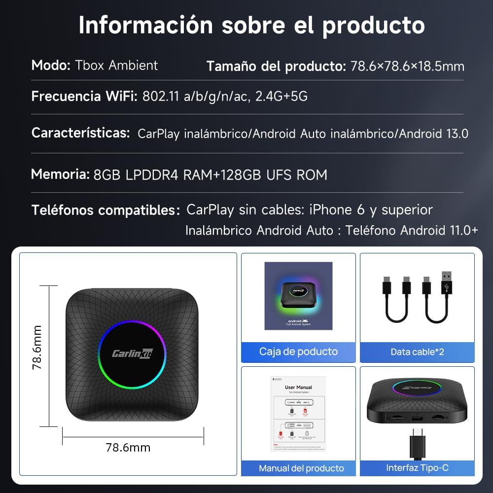 CarlinKit Tbox Max (Ambient) Android13 Qualcomm 6225 8-Core Wireless CarPlay Android Auto Netflix YouTube